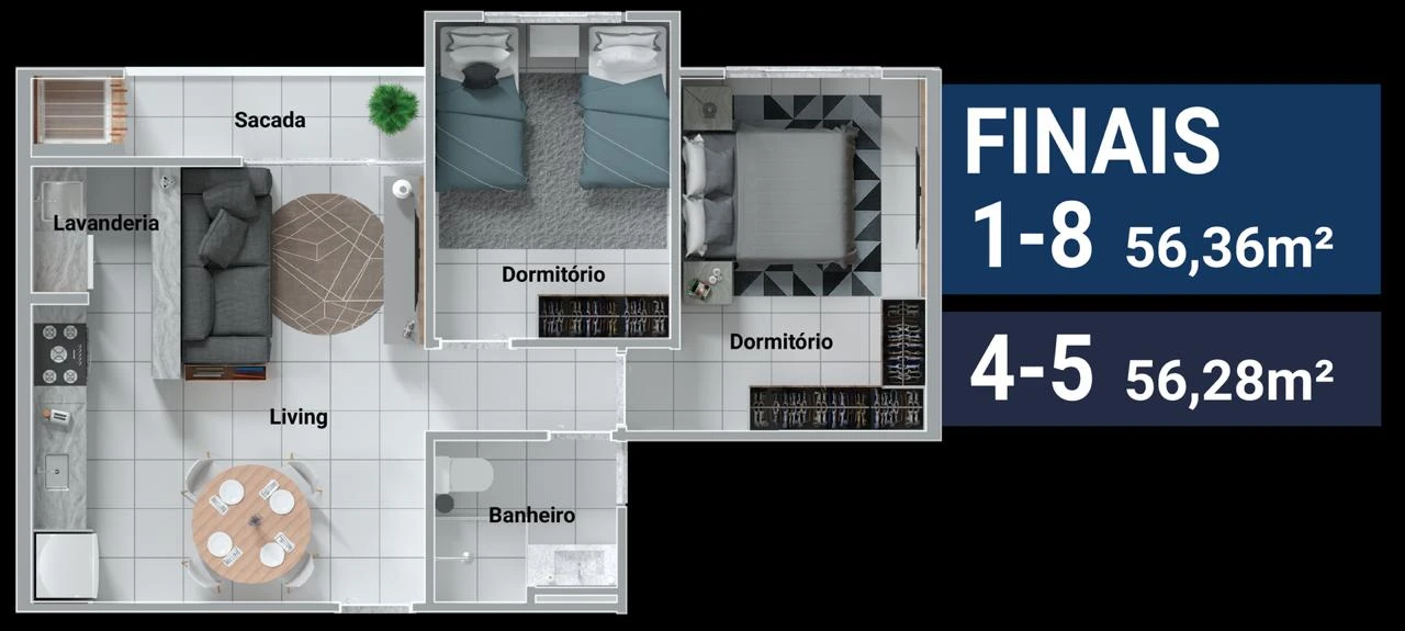 Área privativa: 56m²
